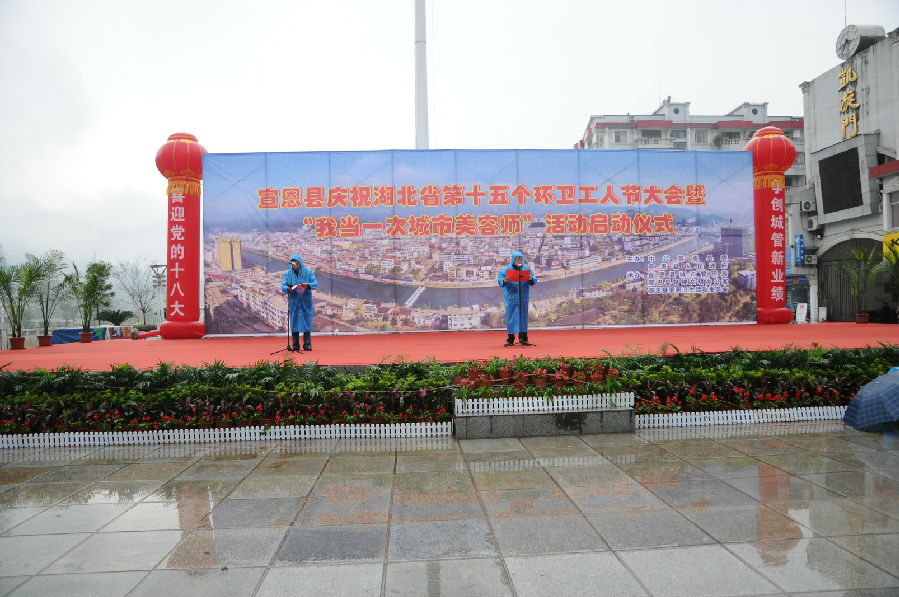 10月26日是湖北省第十五个环卫工人节,早晨8点30分,宣恩县法院党组成员纪检组长段绍罡带领年轻干警在河滨广场参加庆祝大会,随后全部人员到达指定环境卫生区开展清扫工作,冒雨对贡水走廊的路面及绿化带的垃圾进行了清理,活动中干警们亲身体会到了环卫工人的辛劳 。参加活动的干警纷纷表示,我们每个人都有责任和义务为创建文明卫生县城贡献自己的一份力量,共同营造干净、整洁、优美的县城环境,展现我县新面貌。