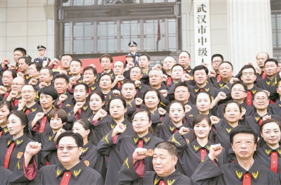 “我是中华人民共和国法官,我宣誓:忠于祖国,忠于人民,忠于宪法和法律,忠实履行法官职责……”8月13日上午9时,湖北省武汉市司法体制改革试点法院首批296名入额法官身着法袍,庄严宣誓。
