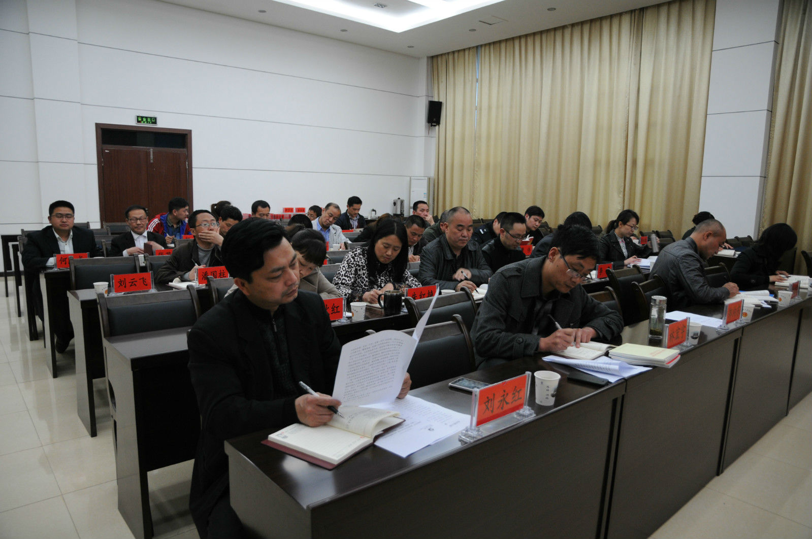 当晚,全体干警还集中学习了《湖北省解决党政机关“门难进、脸难看、事难办”问题的若干规定》、《习近平总书记在十八届中共中央政治局第一次集体学习时的讲话》、《论群众路线——重要论述摘编》中“习近平重要论述”。