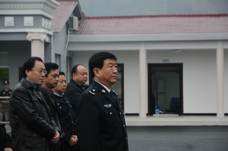 图为朱佰顺总队长观看我院司法警察汇报演练