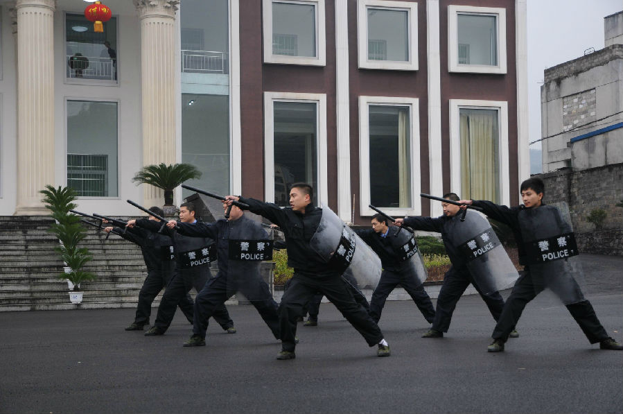 图为我院司法警察演练警棍盾牌操