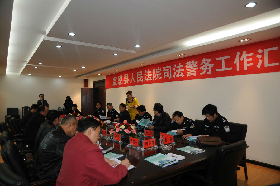 就如何进一步抓好司法警务工作,朱佰顺要求:一是院党组要进一步高度重视司法警务工作,充分认识司法警察大队的重要性。二是要进一步加强队伍建设,充实警力,严格管理,强化训练。三是要进一步深化执法规范化活动,不断提升全院司法警察规范化执法的意识和能力,为全院审判执行工作提供更加坚强有力的警务保障,为宣恩经济社会的快速健康发展作出应有的贡献。