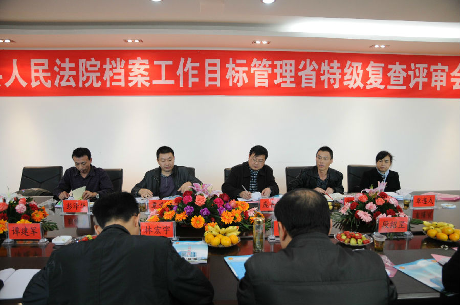 评审组一致认为我院机关档案目标管理工作开展的有声有色,真正做到了领导重视,认识有高度;硬件齐备,保障有力度;业务扎实,管理有效率;人员齐整,工作有作为;管理有序,利用有成效。希望今后进一步搞好档案基础业务工作的精细化建设,加强对电子档案的收集、保管和利用,做好档案数据的安全工作,不断提高信息化管理水平,更好地为全院的审判执行工作服务。